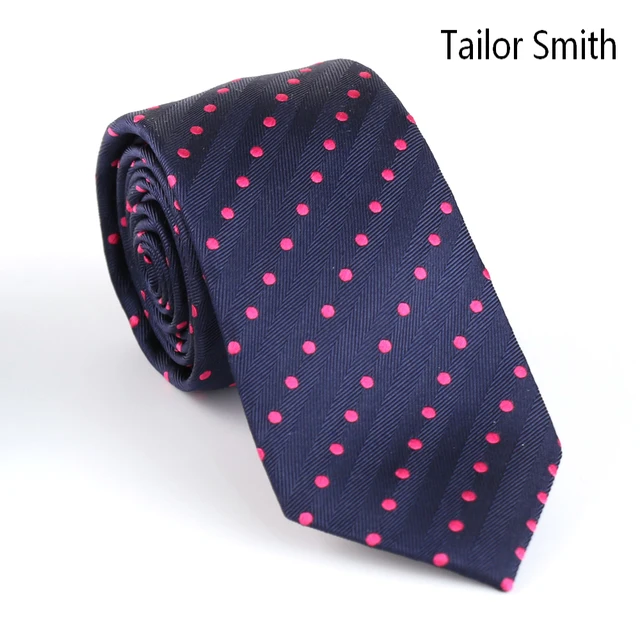 | [해외]재단사 스미스 디자이너 네이비 핑크 폴카 도트 넥타이 럭셔리 남성 순수한 실크 자카드 비즈니스 웨딩 파티 정장 넥타이 최고 품질 |