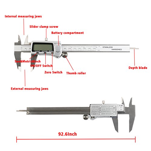 2017 Upgraded Accurate Digital Vernier Caliper: Measurement Range within 0-6 inches/150mm; Accuracy: ±0.001"/0.02mm; Resolution: 0.0005"/0.01mm