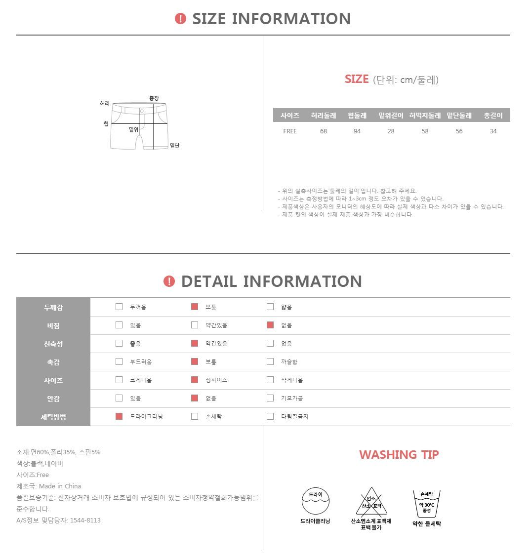 스판 소재 혼용으로 신축성이 좋아 편안함을 더해드리며
