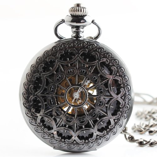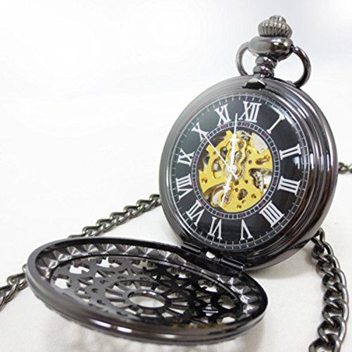 원본상품명: 【ノ?ブランド品】 ?中時計 手?き式 ハ?フハンタ? ?面 スケルトン レトロ ブラック メタル