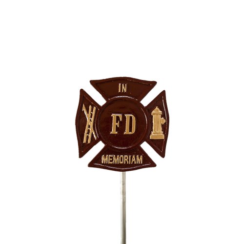 Montague Metal Products Fireman Maltese Cross Grave Marker and Flag Holder, Brick Red with Gold