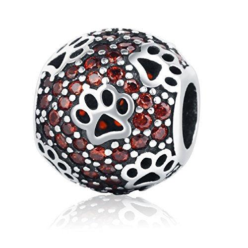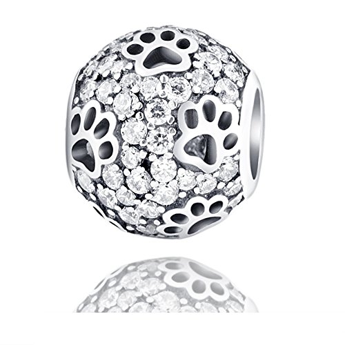 925 Sterling Silver Charms Openwork Dog Paw Pink Cubic Zirconia