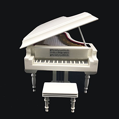 White Piano Music Box with Bench and Black Case Musical Boxes Gift For Christmas/Birthday/Valentine's day, Melody Canon