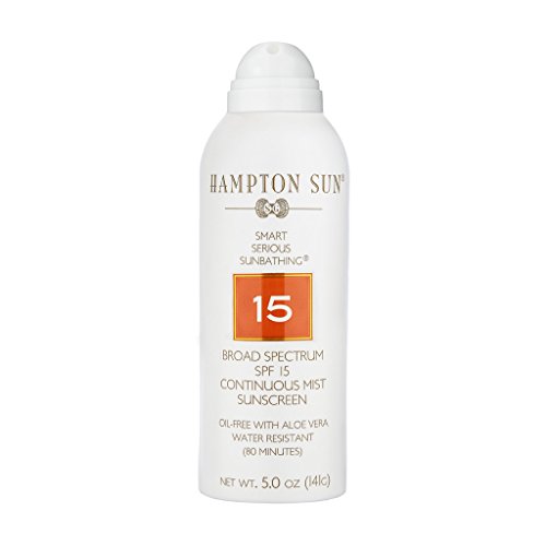 ReleaseDate : 2015-02-01 Studio : Hampton Sun Publisher : Hampton Sun Binding : Health and Beauty Product Description Hampton SPF 15 Continuous Mist Sunscreen offers the highest quality of sun protection in a unique, oil-free formula. The revolutionary formula has advanced ingredients that enhance water resistance and protect skin from the sun's harmful rays during any activity ? from sophisticated sunbathing to high-powered athletics. SPF 15 Continuous Mist has a light, silky feel that absorbs instantly with no sticky film and has a hint of Hampton Sun's signature Privet Bloom scent for the perfect touch of sophistication. This product offers powerful protection ? The non-aerosol 360º dispenser sprays at any angle for complete, even sun coverage without damaging the environment. Without the need for chemical propellants, what is dispensed onto your skin is pure product. Hypoallergenic and dermatologist tested to be used by all skin types. 0