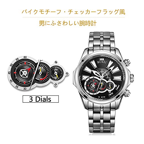 원본상품명: (バオショ)BUREIメンズ腕時計 夜光指針 クロノ ステンレス腕時計 ブレスレット ブラック文字盤 ?赤い?
