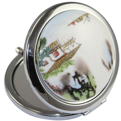 KOLIGHT Chinese Landscape Flower Bird Double Sides (One is Normal,Another is Magnifying)Portable Foldable Pocket Metal Makeup Compact Mirror...