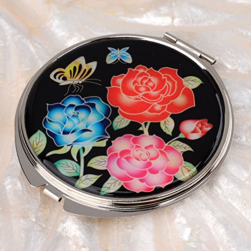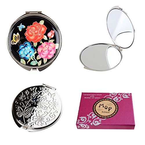 MOP Antique Rose Pocket Mirror Magnifying Compact Size Travel Makeup Folding Cosmetic Hand Mirror Mother of pearl