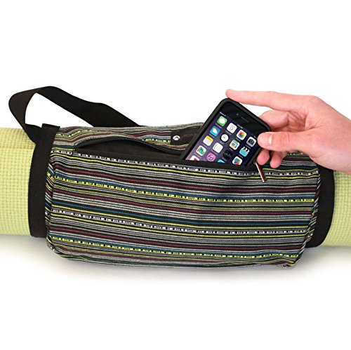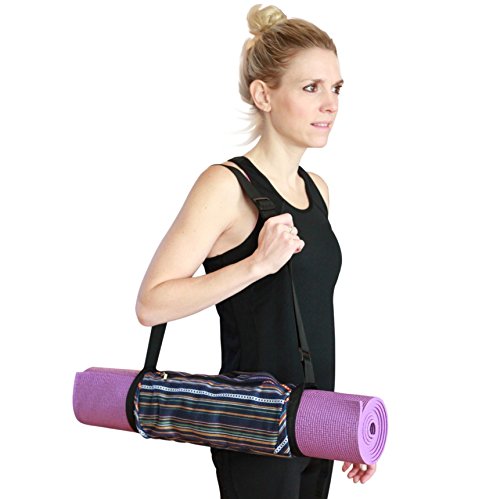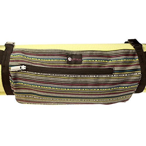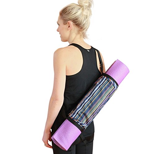Studio : Aurorae Publisher : Aurorae Binding : Misc. Product Description The Aurorae Yoga Mat Sling/Carrier is designed for style and ease when heading to the studio. This streamlined carrier is super light yet very functional. Our carrier accommodates most yoga mats and features one large external zip pocket for securing your valuables. Our carrier is available in our navy multicolor Pura Vida coated woven pattern. Our carriers are fully lined with durable heavy duty polyester for easy care in our unique Yogi Pose pattern. 2 year warranty from date of purchase. Mats not included and sold separately. "Illuminate Your Life" 0