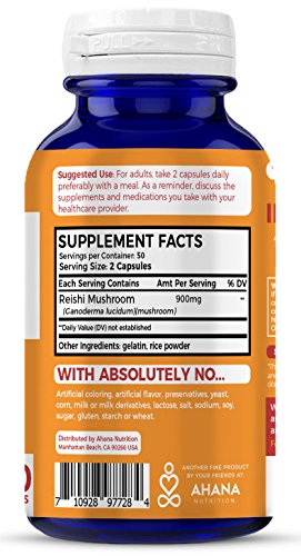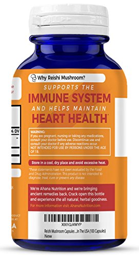 -. Feature : ABSOLUTELY THE BEST REISHI MUSHROOM CAPSULES: Ahana Nutrition offers the best Reishi Mushroom Extract on the market. Our pills are made from the best organic ingredients and features some of the purest ingredients ensuring only the best for your body. The formula from Ahana Nutrition is packed with health benefits that will ensure a greater wellness for your body. / COMPLETELY TASTELESS & ODORLESS: Our Reishi Capsules are completely tasteless and odorless making it extremely easy to use. They are delivered in an easy to swallow capsule form for numerous benefits. Get the fully all natural & pure formula on the market. / PACKED WITH BENEFITS: Our Organic Reishi Mushroom Complex is filled with benefits for your body. This fully organic solution is backed on years of scientific research. This blend serves to support the liver, maintain heart health and aids with body detoxification. / WHY AHANA NUTRITION'S REISHI CAPSULES: Our Reishi Mushroom Supplement is turned into a capsule, which is manufactured in the USA in a FDA registered facility under strict quality control and standards. Our formula is developed sourcing the best ingredients while ensuring that they do not contain fillers, artificial flavoring or other harmful derivatives. / 100% SATISFACTION GUARANTEED: If for any reason at all, you are unhappy with your purchase, you'll receive a no questions asked money back guarantee within 30 days.