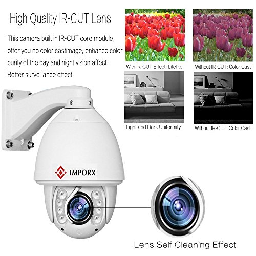 IMPORX CCTV Auto Tracking PTZ IP Camera - 1080P Full HD 20X Optical Zoom Camera - ONVIF High Speed Weatherproof Camera, 500ft(150M) IR Distance, with Fan Heater and Wiper