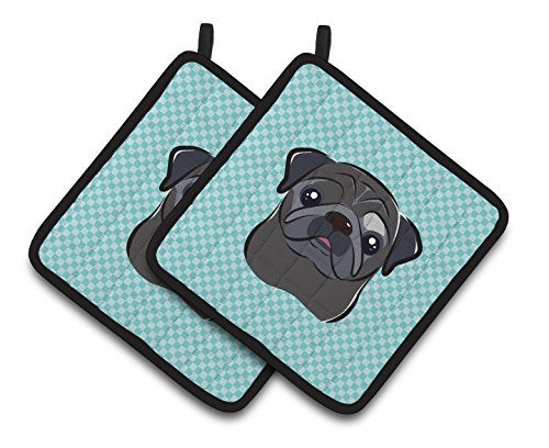 Caroline's Treasures Checkerboard Blue black Pug Pair of Pot Holders BB1201PTHD, 7.5HX7.5W, Multicolor