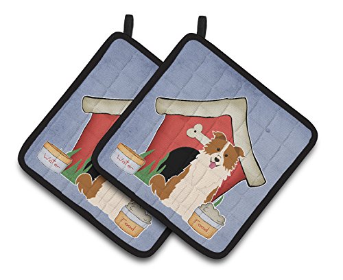 Caroline's Treasures Dog House Collection Border Collie Red White Pair of Pot Holders BB2873PTHD, 7.5HX7.5W, Multicolor