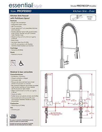 Belanger PRO78CCP Kitchen Sink Faucet with Pull-Down Spout and 1 Handle, Polished Chrome
