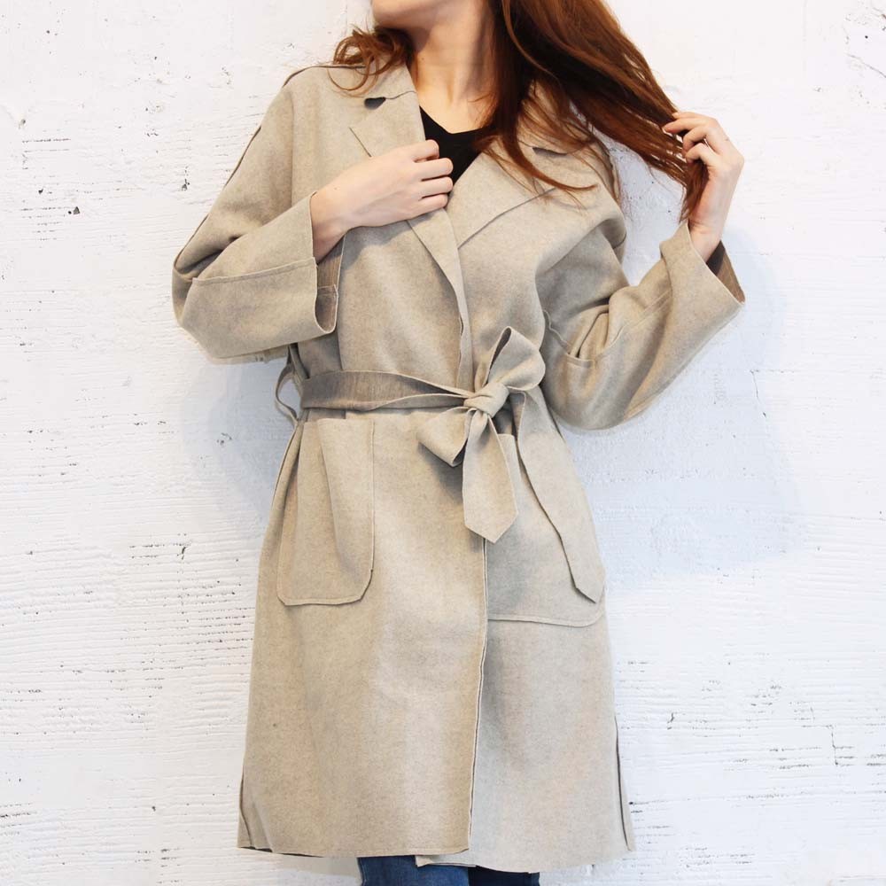 こなれ感のでる程良いシルエットの切りっぱなしデザインロングガウンコート