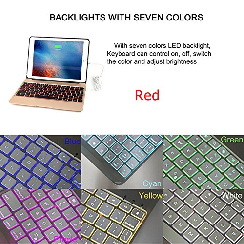 -. Feature : Aluminum 9.7-inch iPad pro keyboard case cover, made of high standard aluminum alloy material, totally aluminum alloy iPad pro/air 2 case / 7 colors LED backlit pro keyboard, 7 color backlighting design, support different brightness control, bring you different enjoyment / Powerful capacity power bank, with 2800mah capacity power bank, can charge for your iPad pro 9.7 or air 2, mobile phone, tablets and other device / Ultra slim, waterproof and portable, clamshell case cover design, the thickness of key only 4mm, super convenience to carry / Comfortable and special function keys, optimized keys design help you get more done from the convenience of your iPad pro keyboard