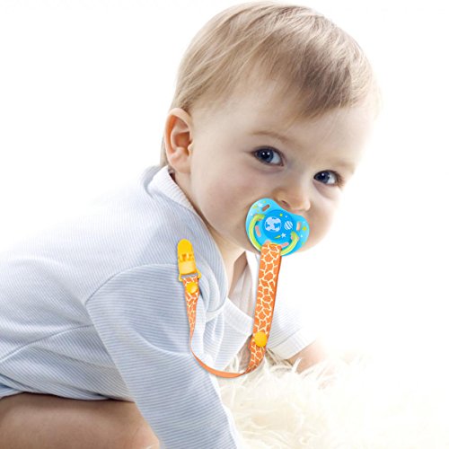 -. Feature : Made from waterproof durable material with plastic clip material. / Safe Material for the baby and babies teeth if they chew on it. It won't rusted, Washable and Fits for most pacifiers. / Size: as in the pictured, The length can be adjustable, Lightweight and comes with variety cute colors and patterns, more colors, more fun for the baby / The clip is designed to be useful to prevent baby pull off to lose and not easy to fall along with waterproof loop elastic used to hold it all together / Set of 10 Pack pacifier clips (Pacifier is not included). Easy to use and perfect for holding pacifiers and other small items that usually your little ones like to throw on the ground