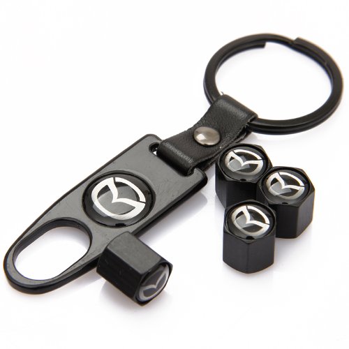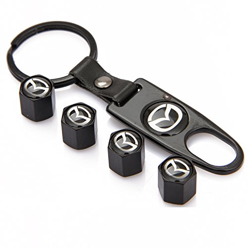 CzlpV Black Car Wheel Tire Valve Caps Tyre Stem Air Caps Keychain Styling For MAZDA