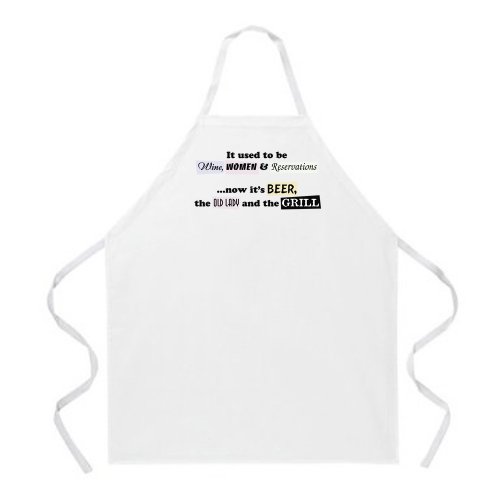 Attitude Aprons Fully Adjustable "Wine, Women and Reservations" Apron, Natural