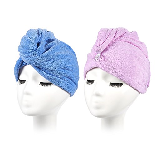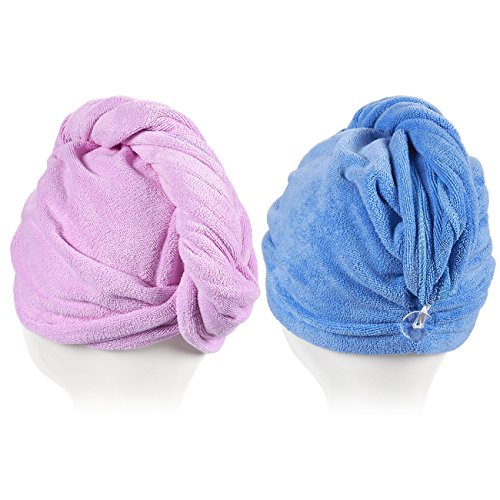 EASY TO USE: Bend over and let your hair fall in front of you. Place the towel on your neck and head then twist the towel with the hair in it. Stand up and clips securely with the button on the towel to keep your hair underneath the towel.
