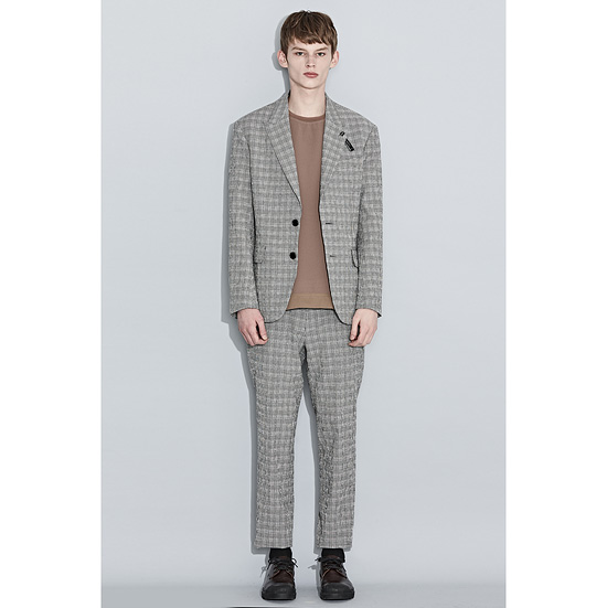 - 텍스쳐감이 느껴지는 시어서커 글렌체크 남성 자켓.