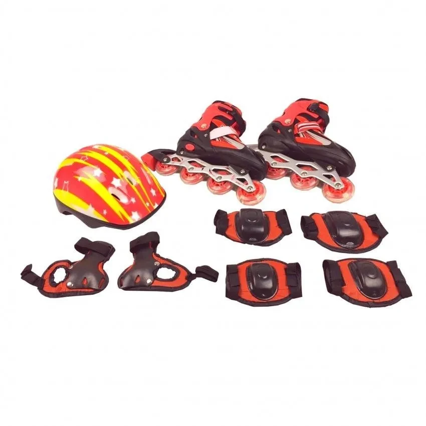 Specifications of BUNDLE: SOKANO Inline Skated Roller Shoes With Adjustable Length and Protective Equipment Red