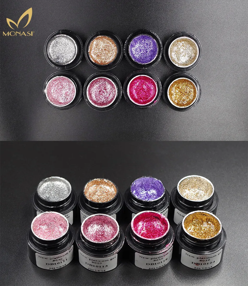 Lasting time:Platinum Gel Super Shining Glitter Sequins UV Nail Gel Polish