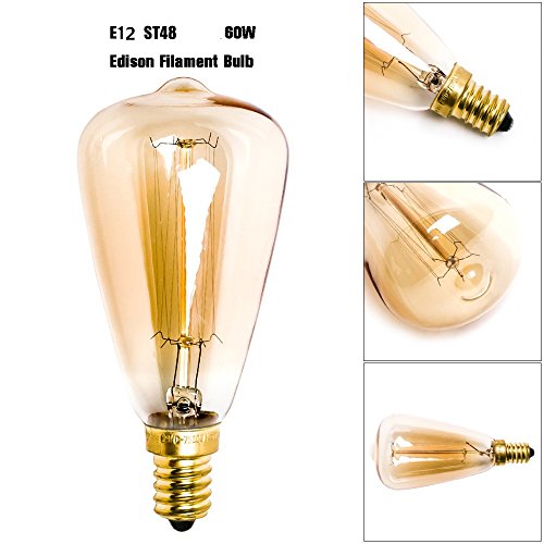 Vintage Edison Light Bulbs (E12 60W 2300K ),Warm White Nostalgic Tungsten Filament Candelabra Base Incandescent Lamp Squirrel Cage Style Bulbs for Home Light Fixtures Decorative , Dimmable,6-pack