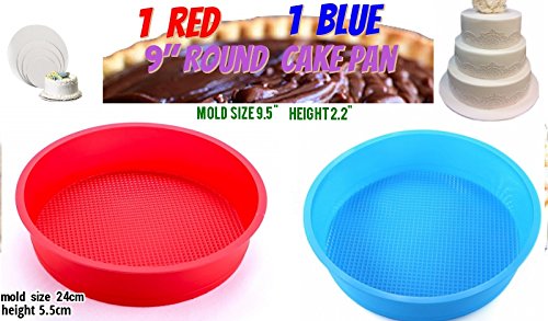 Set of 2, 9-Inch Round Cake Pan silicon cake molds for baking 9-inch Baking Cake Mold silicone cake pan silicon cake baking pans round bread pans for baking 9.5 x 2.25-Inches (1 red &1 blue