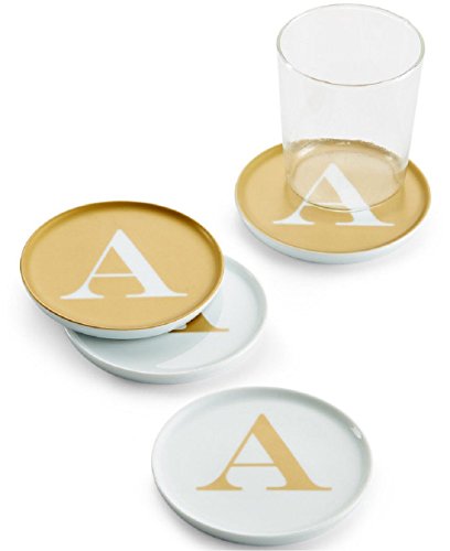 The Cellar Gold Initial Coasters Collection Porcelain Set of 4 Initial "A" Coasters