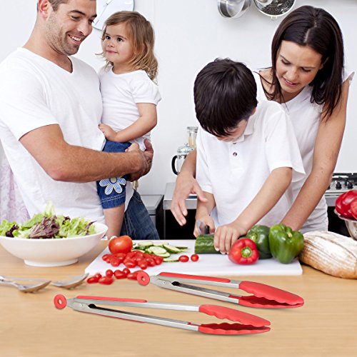 Premium Food Grade Silicone Head & Nonslip Handle: 100% FDA Grade and BPA Free. It's heat resistant to 480ºF, and stain and odor resistant. Simply won't melt, warp, rust or flake into your food like cheap plastic tongs or nylon or rubber tongs. Nonslip Handles that provide you with secure and comfortable grip. Easy to use and clean.