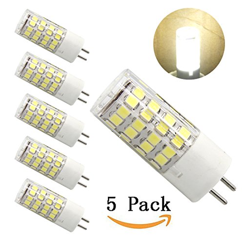 Bqhy Dimmable T4 G5.3 Type LED Halogen Replacement Bulb, Daylight G5.3 LED AC 120 Volts, 5W 500lm 50W Equivalent for Floods, Step, Tulip, Desk Lamps and Mushroom Lighting(Pack of 5)