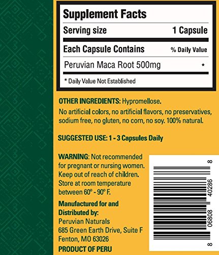 Peruvian Naturals Maca powder is certified organic by the United States Department of Agriculture (USDA). The capsules are certified vegan, kosher and halal.