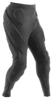 -. Feature : Non-restrictive full length design / Impact resistant padding / 1/2 inch and 5/8 inch thermal formed, scored, flame bonded, high density foam / 100% breathable quick drying mesh fabric / Covers: tailbone, side hip, side leg, sits bones, front hip pointer and knees