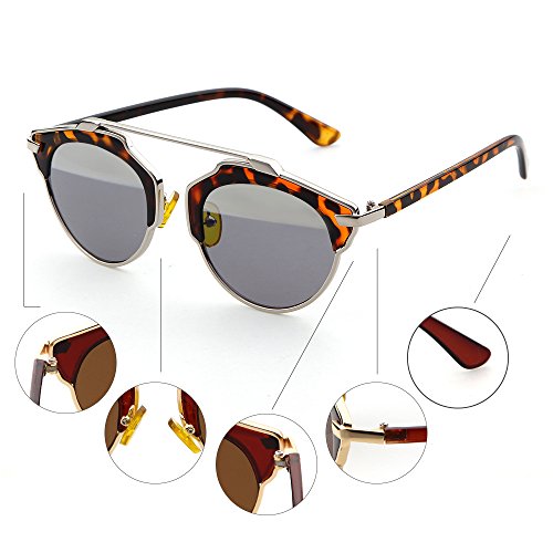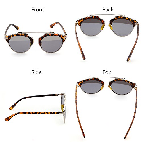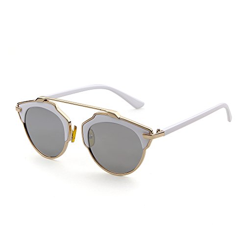 Classic cateye sunglasses for unisex with great looking flat frame and reflective colored lens