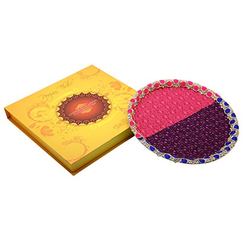 - Exclusively decorated poojan thali set with colorful pearls, zari work, beads, studs, stones, kundan work, motifs, lace work, brocade work and other premiun material along with all items used to perform a virtuous Pooja at your own place.