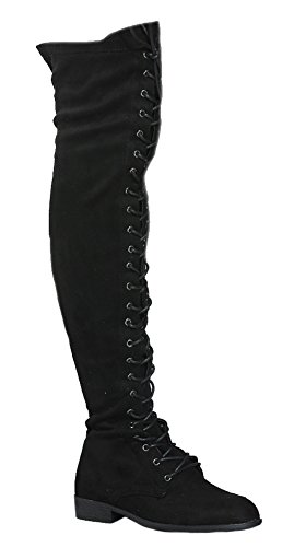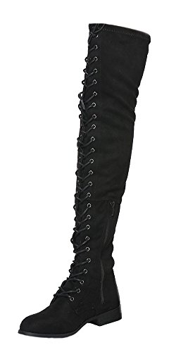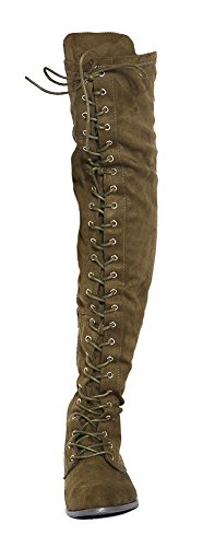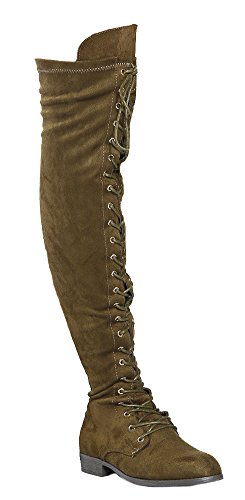 (Wild Diva)/Women's/Boots/DIRECT FROM USA/Wild Diva Women Army Military Combat Riding Lace Up Flat Over The Knee Thigh High Boots OKSANA-308