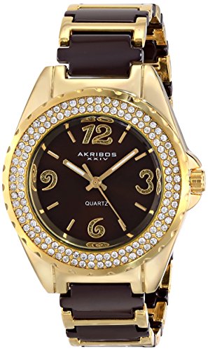 -. Title : Akribos XXIV Women's AK514BRG Quartz Movement Watch with Brown Dial and Yellow Gold and Brown Ceramic Bracelet