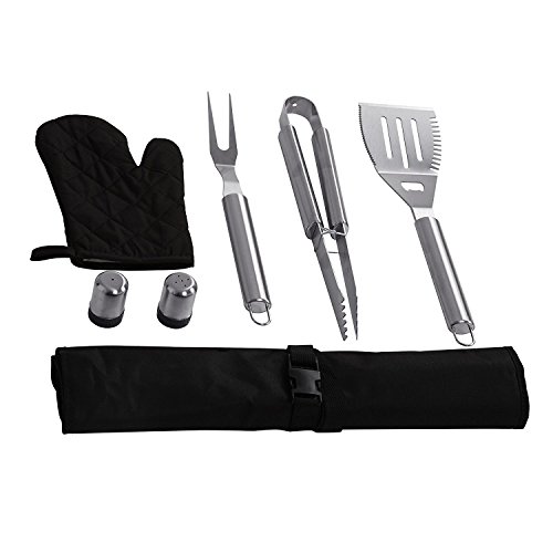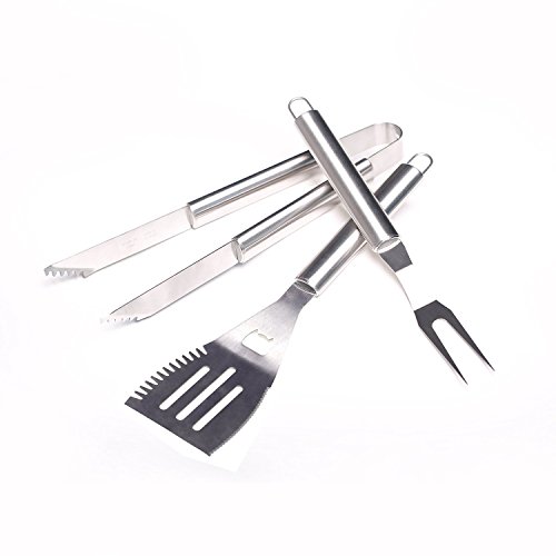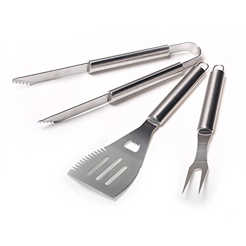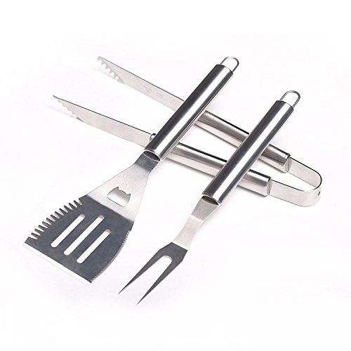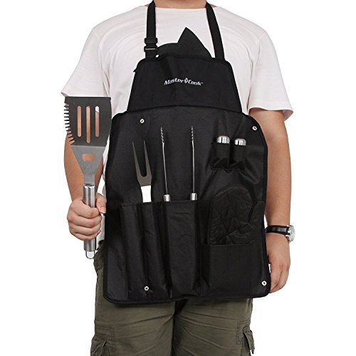 Master Cook Barbecue Tool Sets, Extra Thick Stainless Steel BBQ Tool Set-3 Piece with Apron Storage, Professional Grade BBQ Grill Tools including Spatula,Tongs and Fork