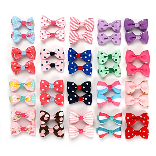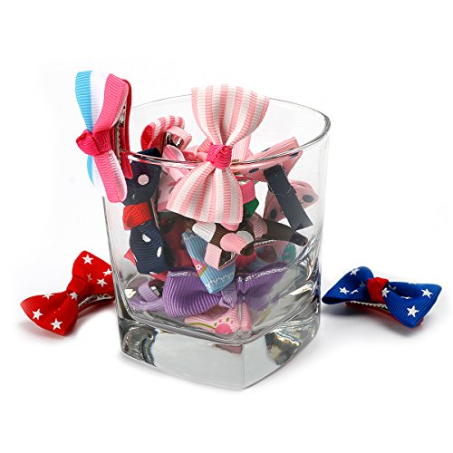 Ezerbery 40 pcs 1.8" Baby Girls Ribbon Hair Bow Clips Barrettes For Girl Teens Kids Babies Toddlers, printed pattern