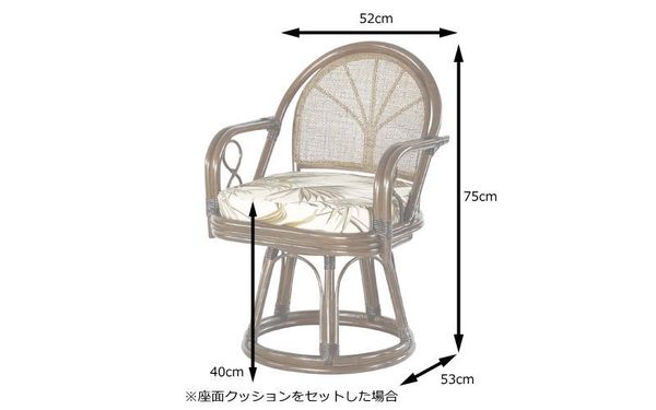 ●座面が360度回転式のラタン製チェア。