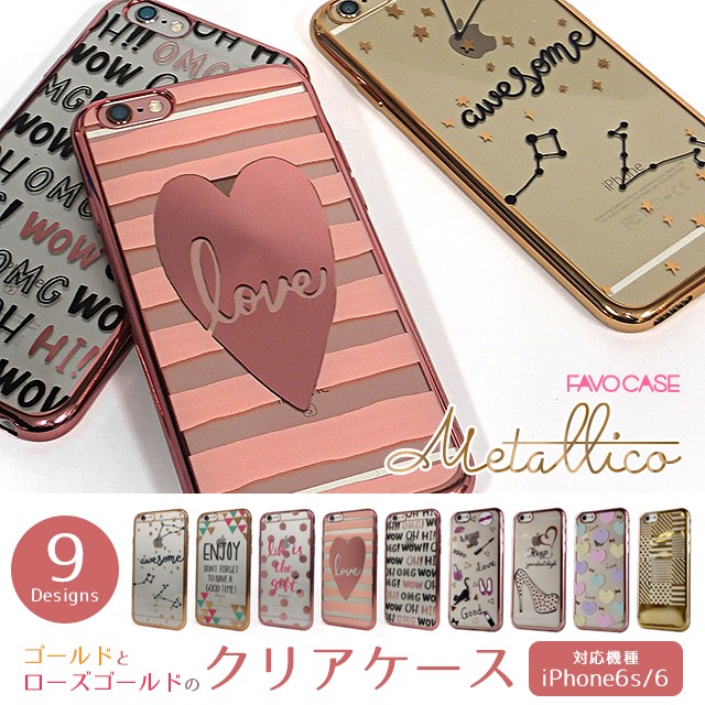 iphone アイフォン アイホン 6s 6 4.7 インチ おしゃれ 人気 おすすめ かわいい 可愛い 送料無料 レディース スマホ スマートフォン ジャケット 携帯 ソフトケース メタリック ゴールド ピンク 透明 クリアケース カバー docomo au Softbank ドコモ