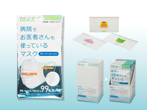 -. Feature : 寸法:W175mm×H90mm / 材質:本体(ポリプロピレン・セルロース・ポリエステル)、耳ヒモ部(ポリエステル・ポリウレタン)、鼻部(ポリエチレン)、サイドサイドウイング部(ポリプロピレン、ポリエチレン) / 1袋=5枚入り / サイドウイング、携帯抗菌性マスクケース付 / 原産国:日本(ISO9001取得工場で製造)