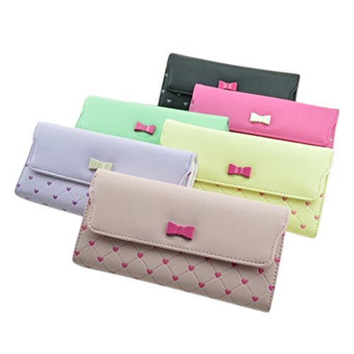 -. Title : ShiningLove Women Cute Bowknot Purse PU Leather Lady Clutch Wallet Long Handbag Card Holder