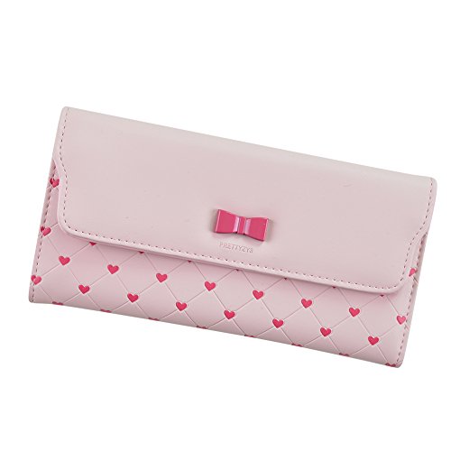 -. Feature : ** Pattern: Smooth Leather, Cute Bowknot decoration, Hearts P.R.Inting, Candy Color and Classic style. / ** Dimension: 19.2*10*2.5cm, easy to carry and suitable for holding cash, cards, phones and other little things. / ** Material: Made of PU Leather, High Quality, Soft and Durable. / ** Structure: 2-fold Long Purse including Card slots, Photo slot, Cash and Coins Pocket, Zipper Pocket. / ** Application: A handheld Clutch Purse for Casual, Travel, School, Shopping, Office etc.