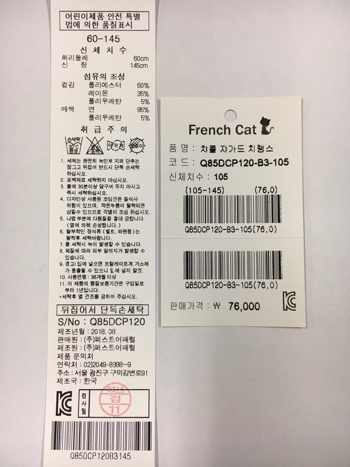 제조자 : 퍼스트어패럴