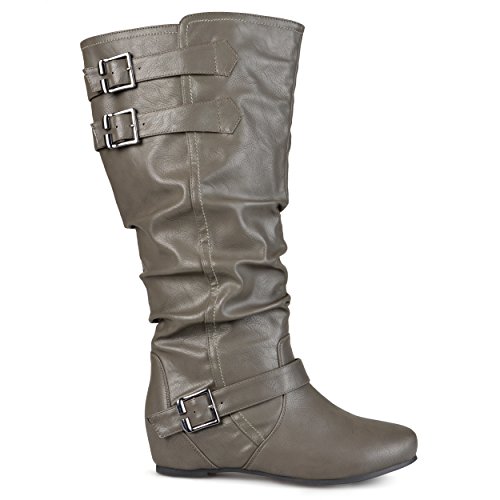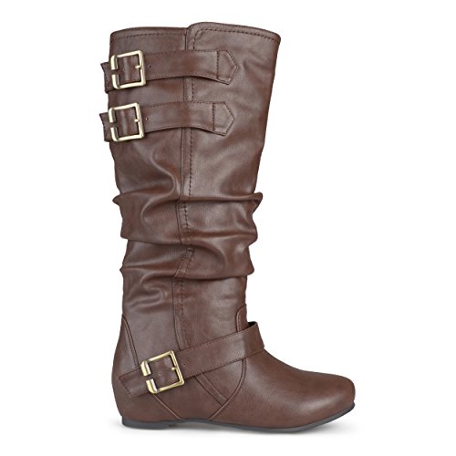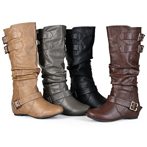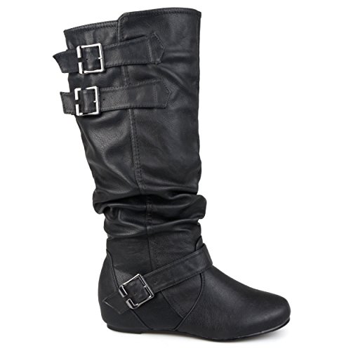 Product DescriptionExpress your style in chic flat boots by brinley co. these cute boots feature faux leather uppers that rise mid-calf and highlight slouchy detail on the shafts for a relaxed look.0