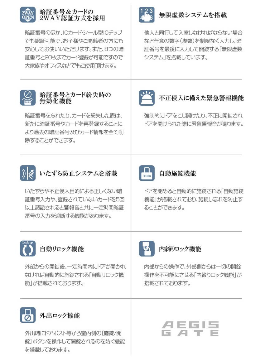 I bought the topic Qrio, but I can not even register even if the application is too bad so I returned it at the end and suddenly purchased this product. The price was expensive, but the instructions were polite and I was able to install with confidence with a single screwdriver. This product can be unlocked with a passcode and Feria card such as SUICA, Android smartphone equipped with a wallet mobile. There is a master mode and there are modes managed by the administrator, so it would be ideal for facilities such as offices where there are many entrants. There are 4 Feria cards from the beginning, and one of them comes with a small seal type of about 2 cm and it sticks it to an iPhone that does not correspond to your wallet. Since automatic locking is also configurable, it automatically locks when the door closes.