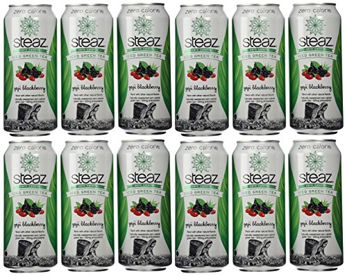Steaz Zero Calorie Iced Green Tea, Goji Blackberry, 16 Ounce (Pack of 12)