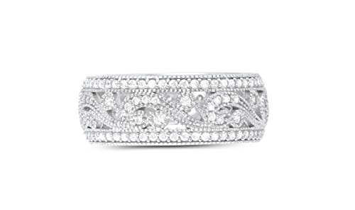 -. Binding : Jewelry -. Brand : Heartbeat -. Department : Womens -. Feature : 8 mm wide all around and 3 mm thick / High Polish Rhodium Plated Sterling Silver with CZ / Ring Size from 5 to 11 / Gift Box Included -. ProductGroup : Jewelry -. ProductTypeName : FASHIONRING -. Title : Sterling Silver Simulated Diamond 8mm Wide Dome Ring - (Size 5-11)