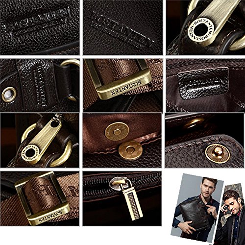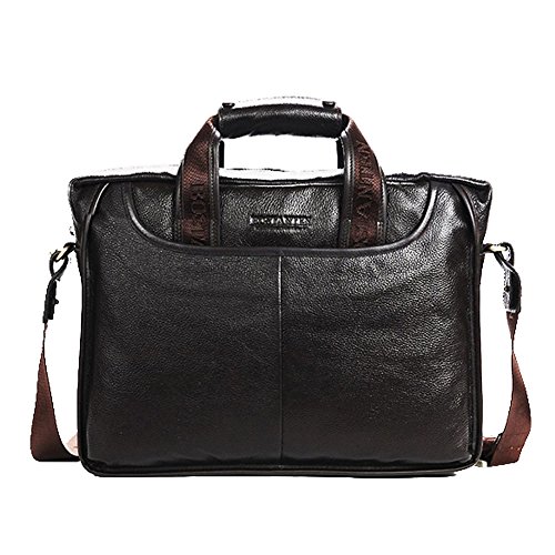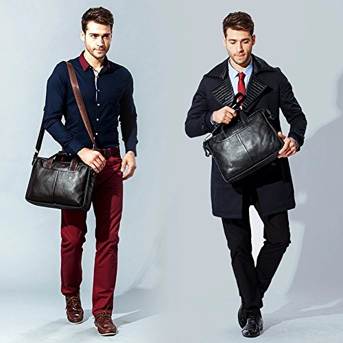 - Feature : Outer Material: cowhide leather / Dimension 38W x 28 H x 10 D CM Weight: 1.3 kg / Natural gorgeous cowhide leather, double strong carry handles , long removable and adjustable shoulder strap, high quality hardware, tidy and neat stitch , classic design, all make this bag a perfect briefcase. / The bag is delicately designed, the high quality cowhide leather also makes it look much higher end. The interior is spacious and well organized, nicely lined with durable fabric. Inside the main bag there is one laptop compartment for a laptop of 14-inches and one zipped wall pocket for important belongings, two open pockets for wallet and mobile phone. / This stylish bag may be a good choice as a briefcase, a work bag or a laptop case. The durable quality is excellent and the classic style is timeless, it promises all value for every penny you spend.